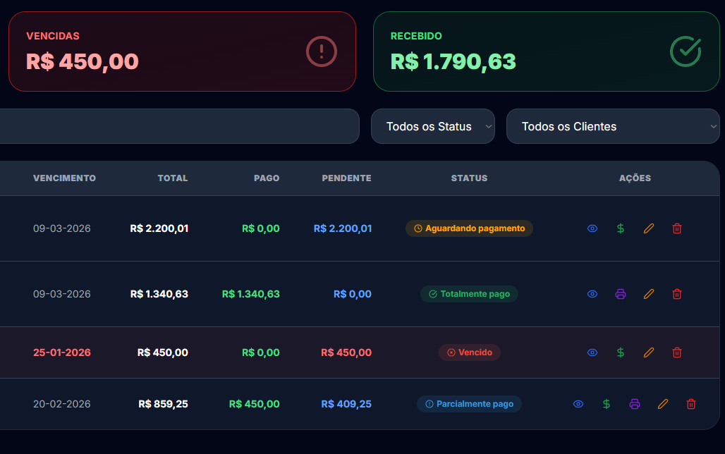 - Integração total entre venda e financeiro